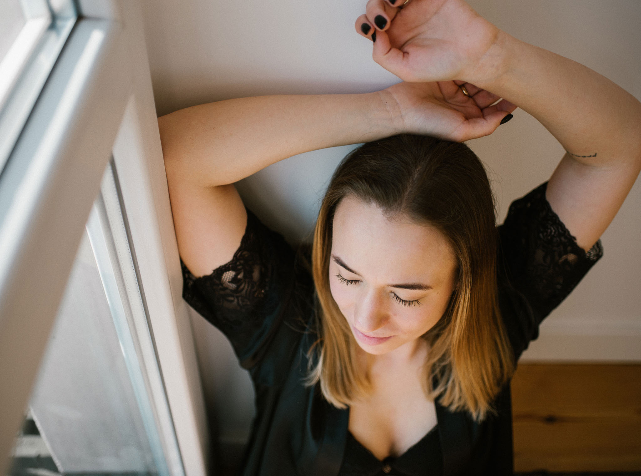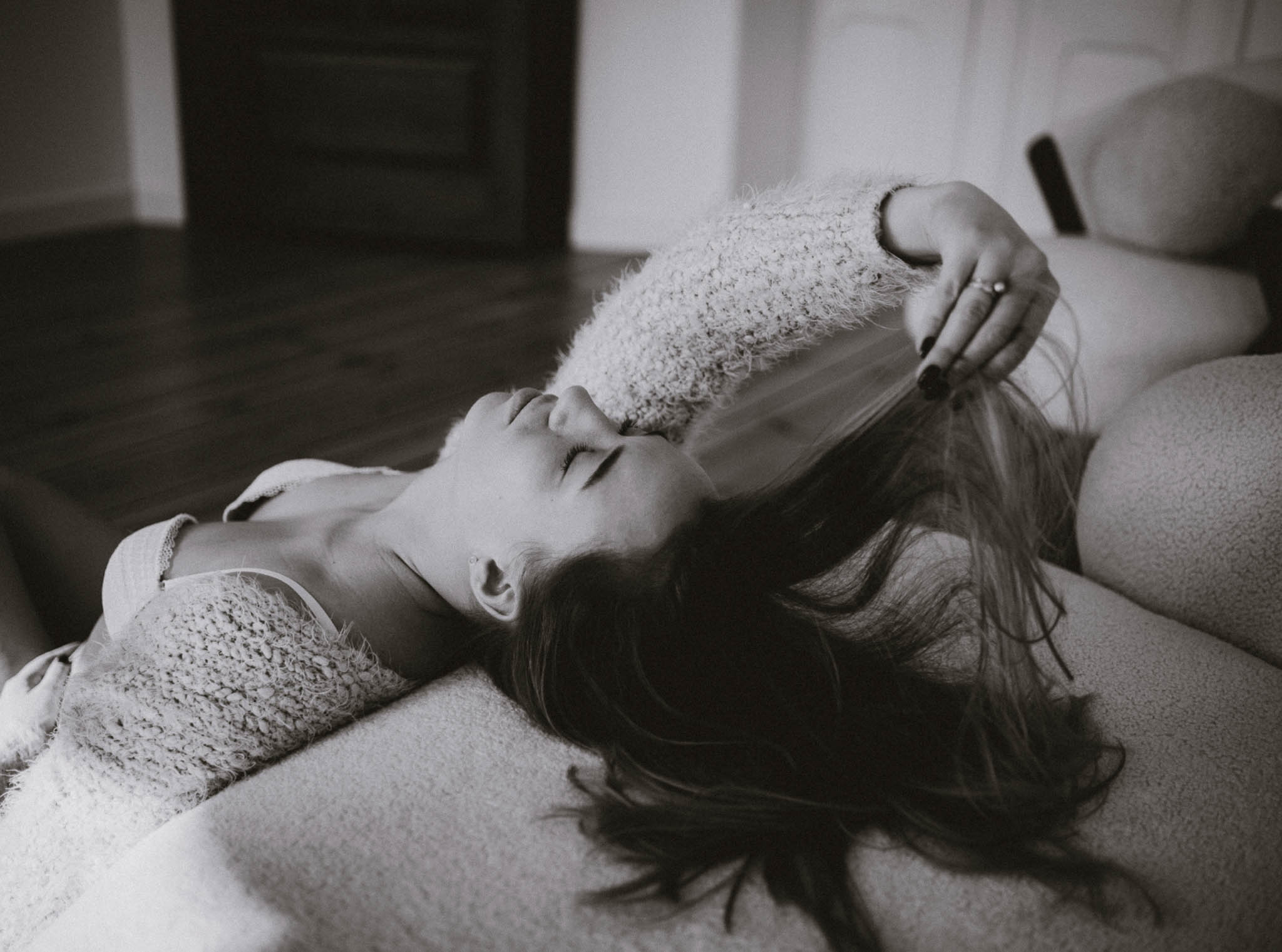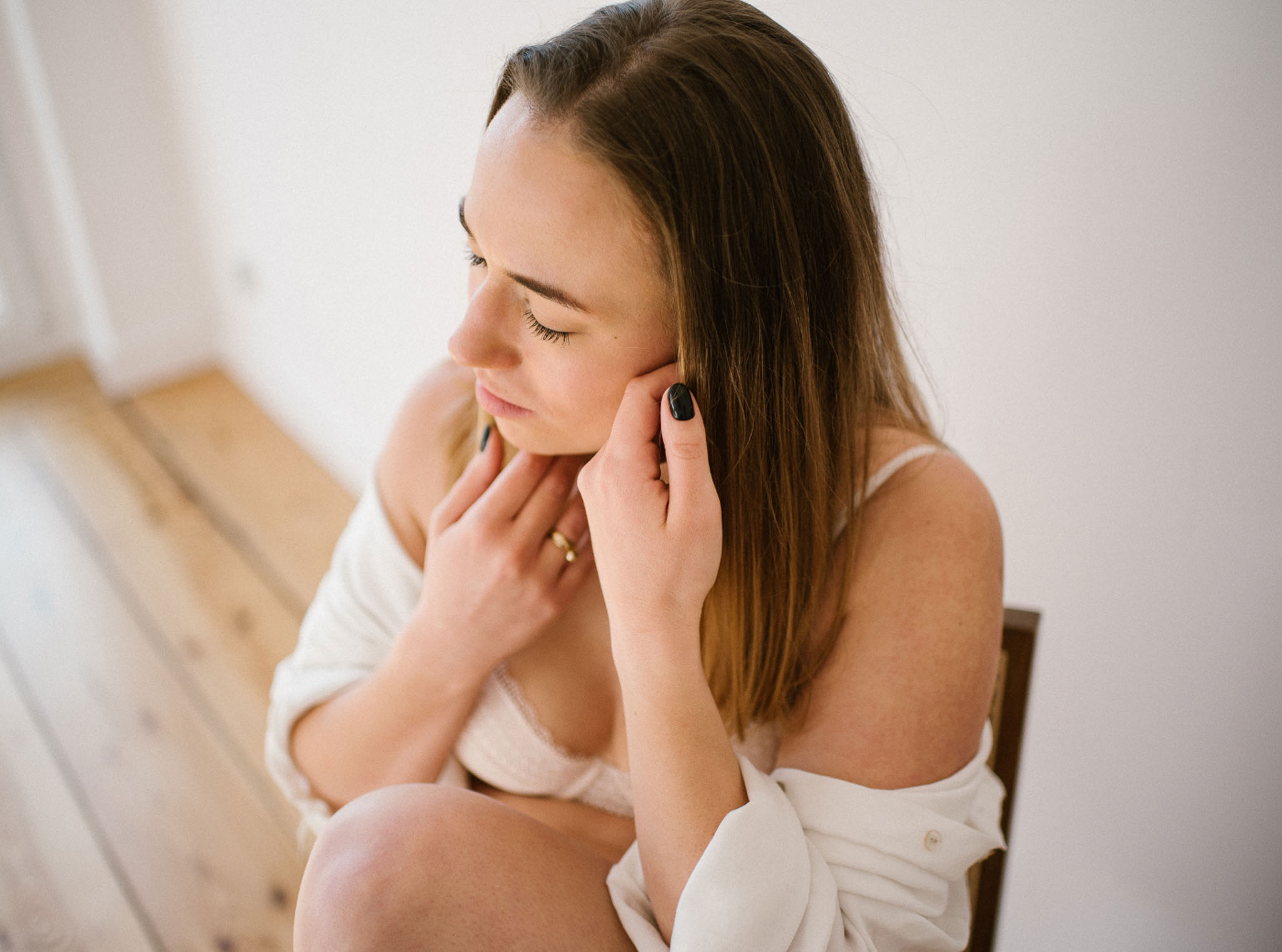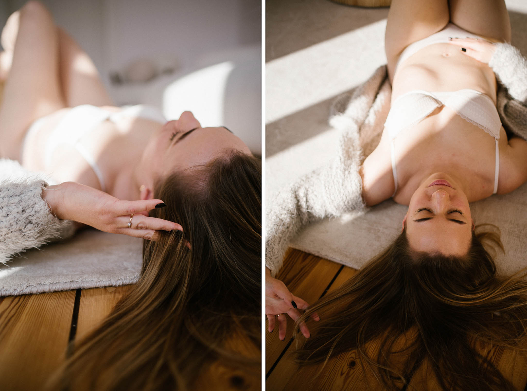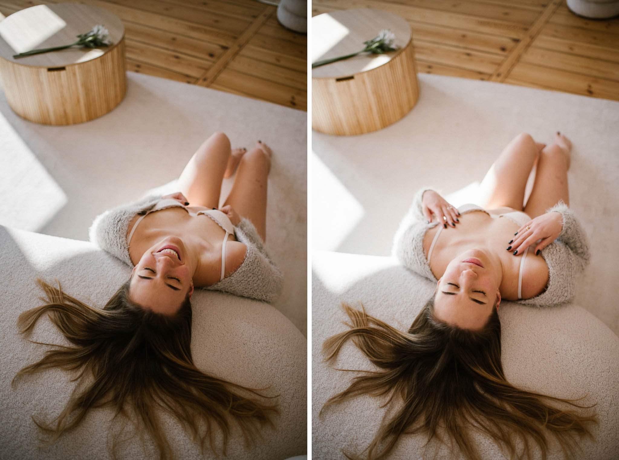 Wyszła z tej sesji lżejsza. Z innym spojrzeniem na swoje ciało. Z poczuciem, że kobiecość nie ma jednego kształtu, jednego światła ani jednego wieku. I że czasem wystarczy odrobina przestrzeni, światło i uważność, żeby zobaczyć siebie naprawdę.