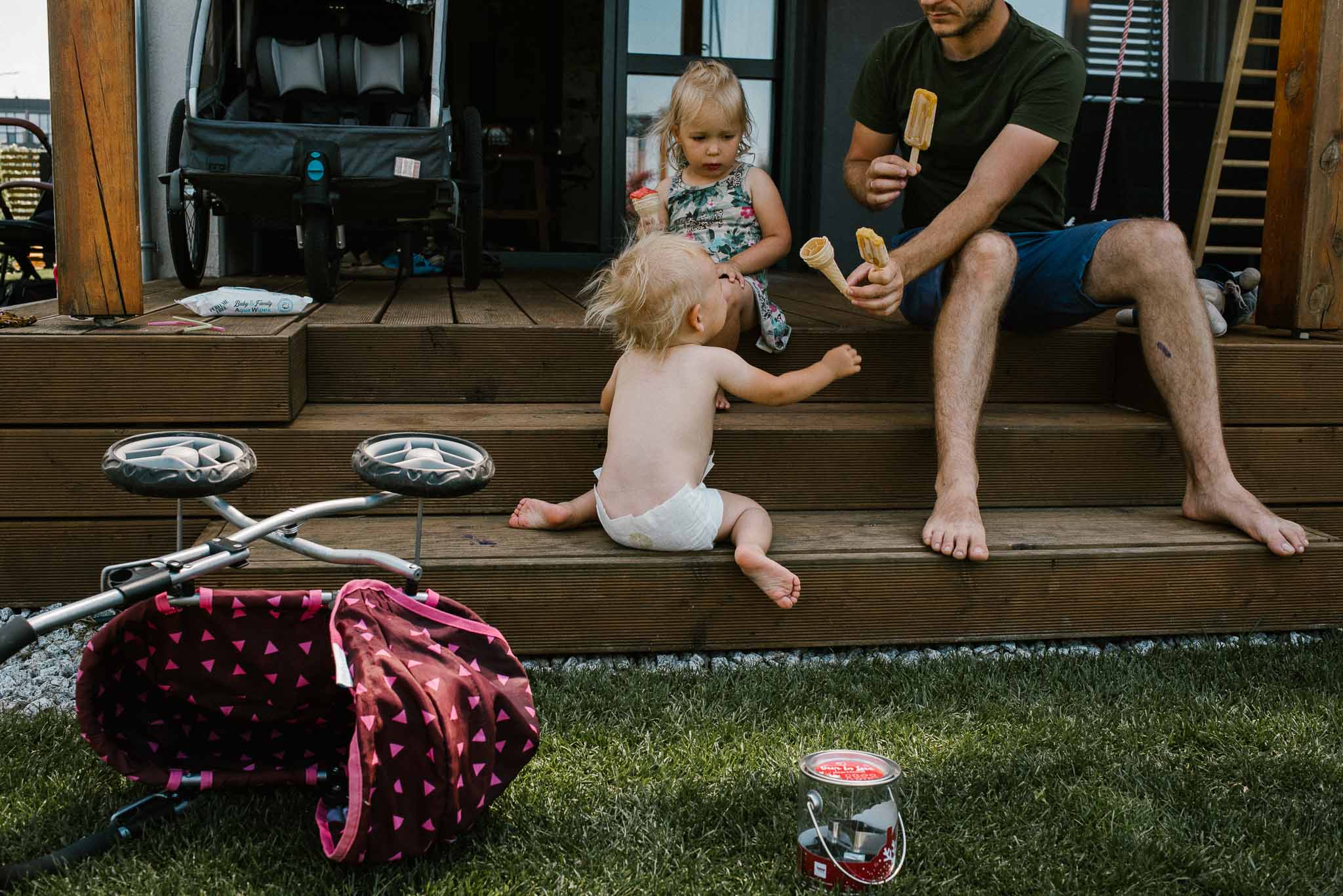 Przyszłam do Natalii, Kostka i dziewczynek przed śniadaniem. Wyszłam po podwieczorku. To był zwykły dzień. Upalna sobota. Z naleśnikami, brudnymi stopami, obieraniem ziemniaków, koszeniem trawy, kąpielą w basenie, wyprawą na plac zabaw. Dla jednych nie działo się nic, a dla mnie tak wiele.