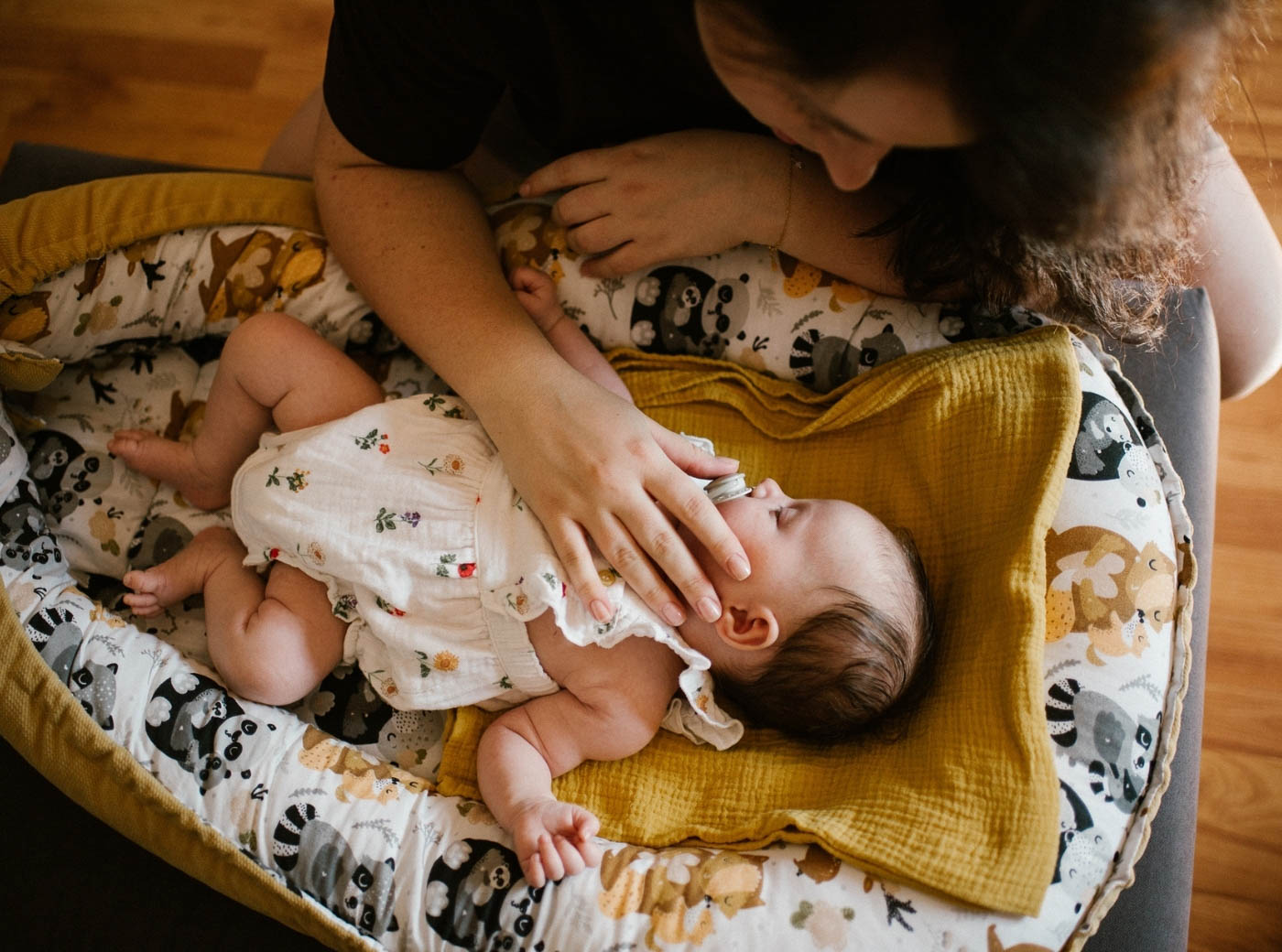 Spotkałyśmy się na szybkiej mini sesji na wiosennej łące. Mnóstwo stresu, oczekiwań, porównań do tego, co matki prezentują nam w internetach. Ale wraz z A. był też P. Opoka, wsparcie, ufający, kochający, cierpliwy i spokojny. Zaklikało nam od razu, choć wiem, że stres sesyjny przyjemny nie był. Mam jednak pewną tajną broń – umiejętność budowania zaufania, warsztat i doświadczenie. Zdjęcia zrobiły robotę i wszelkie wątpliwości po prostu zniknęły.