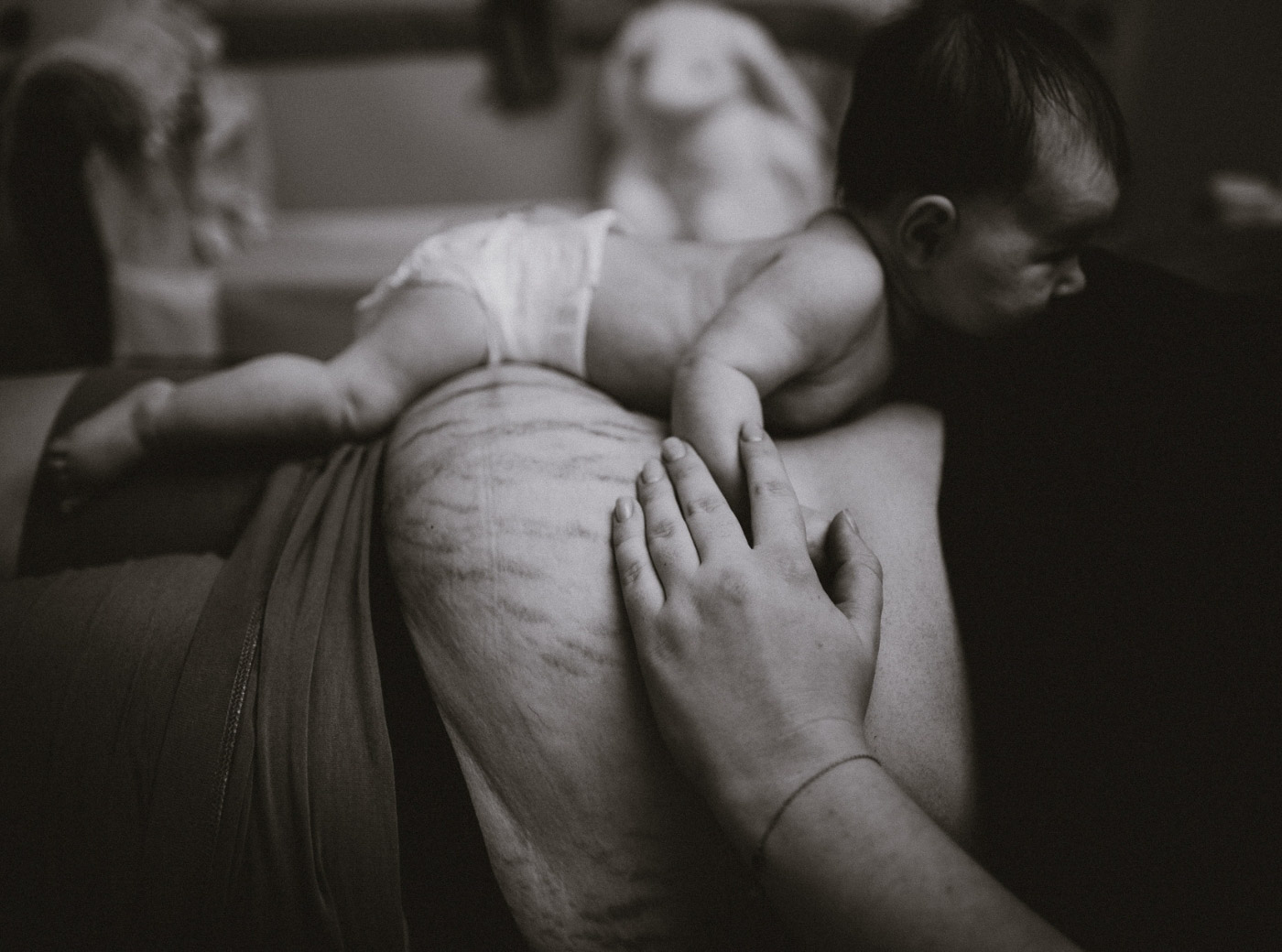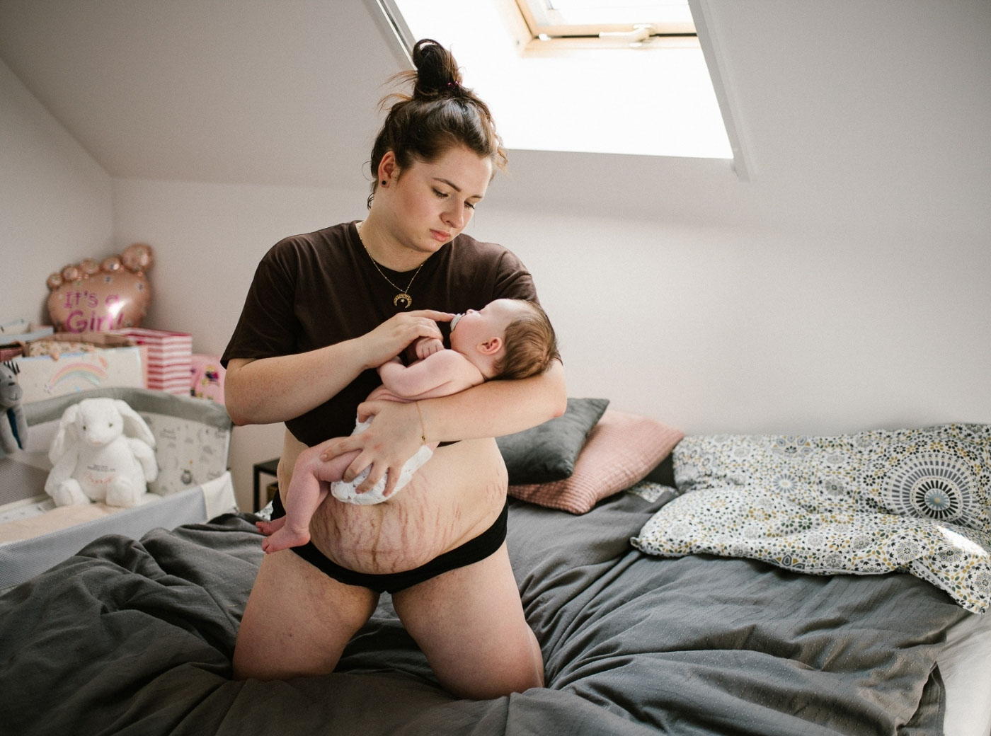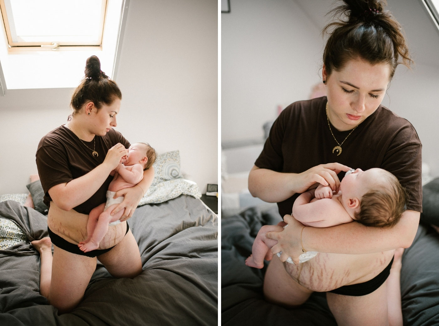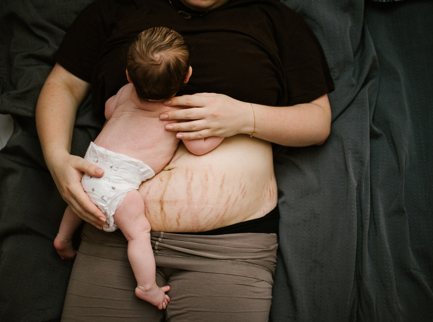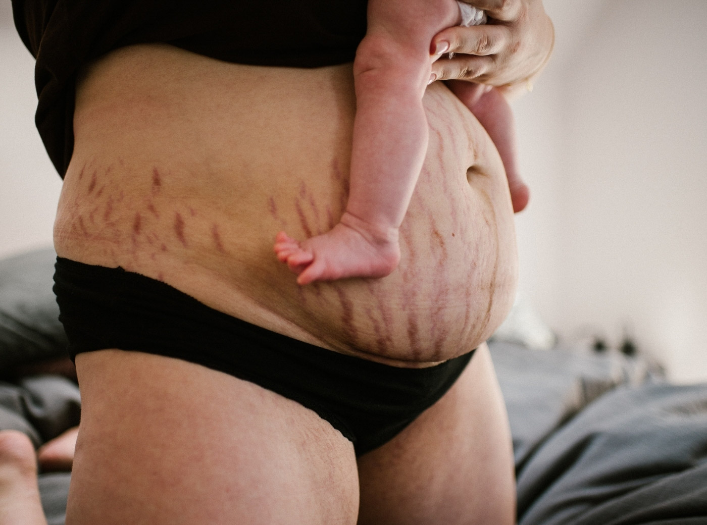A. sama zaproponowała zdjęcia swojego brzucha po czytaniu moich postów na Instagramie. Słuchaniu o tym, jak ważne dla nas kobiet, matek, jest dzielenie się prawdą o tym, jak wygląda nasze ciało po porodzie. Czym jest macierzyństwo… Jakie emocje towarzyszą porodowi. To złożoność, która nas kształtuje, ma wpływ na decyzje, lekkość bytu.